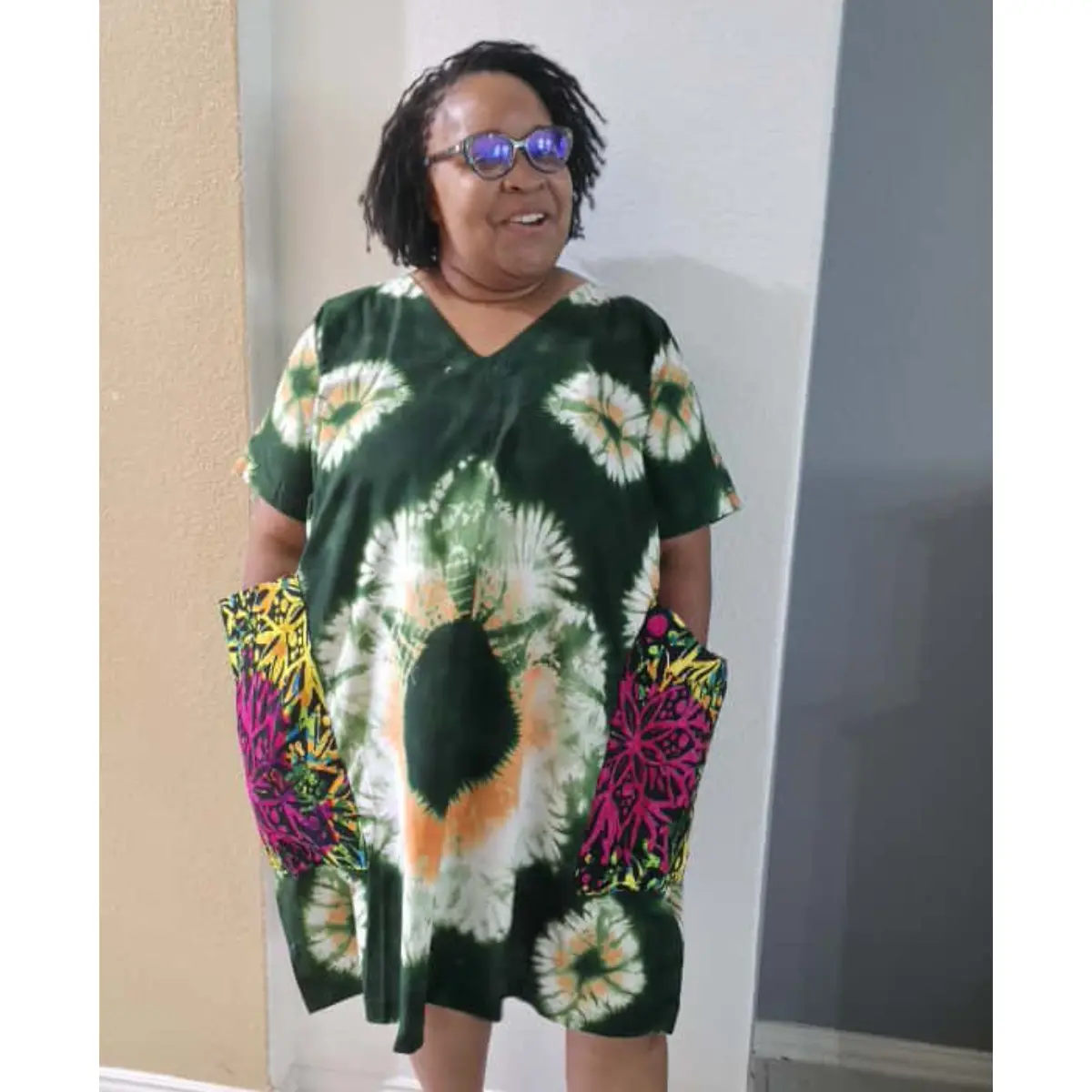 Let your spirit shine in the Adanna Tie-Dye Pocket Dress — a celebration of individuality, comfort, and Afrocentric flair. Designed in an effortless A-line silhouette, this dress features a radiant tie-dye base paired with vibrant oversized pockets in contrasting Ankara prints. The blend of structure and freedom creates a standout look perfect for everyday royalty.