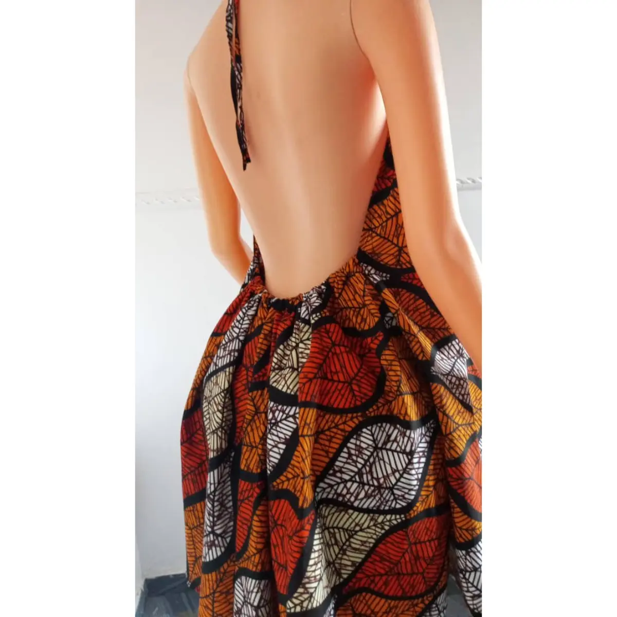 Introducing the Zuri Sands Halter Dress — where breezy beach vibes meet bold African elegance. Designed for sunny escapes and warm afternoons, this effortlessly chic backless dress is crafted from breathable Ankara cotton with vibrant prints that reflect nature’s palette. The high halter neckline ties securely at the back, cascading into a flared silhouette that flatters every body type while allowing for freedom and flow.